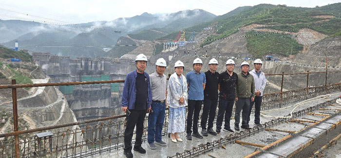 考察组于6月17日抵达东庄水利枢纽研学基地,18日上午9时,在东庄枢纽建设公司副总经理陈梦等工作人员的陪同下,调研团队从研学基地出发前往施工现场。调研团在坝前观测平台,详细听取了东庄水利枢纽工程建设总体情况汇报。随后到达790卸料平台,俯瞰大坝浇筑现场,实地参观大坝浇筑、备仓仓号,并就枢纽大坝工程建设情况展开深入交流。11时,调研团队深入地下厂房,对引水发电系统工程建设情况进行细致调研。